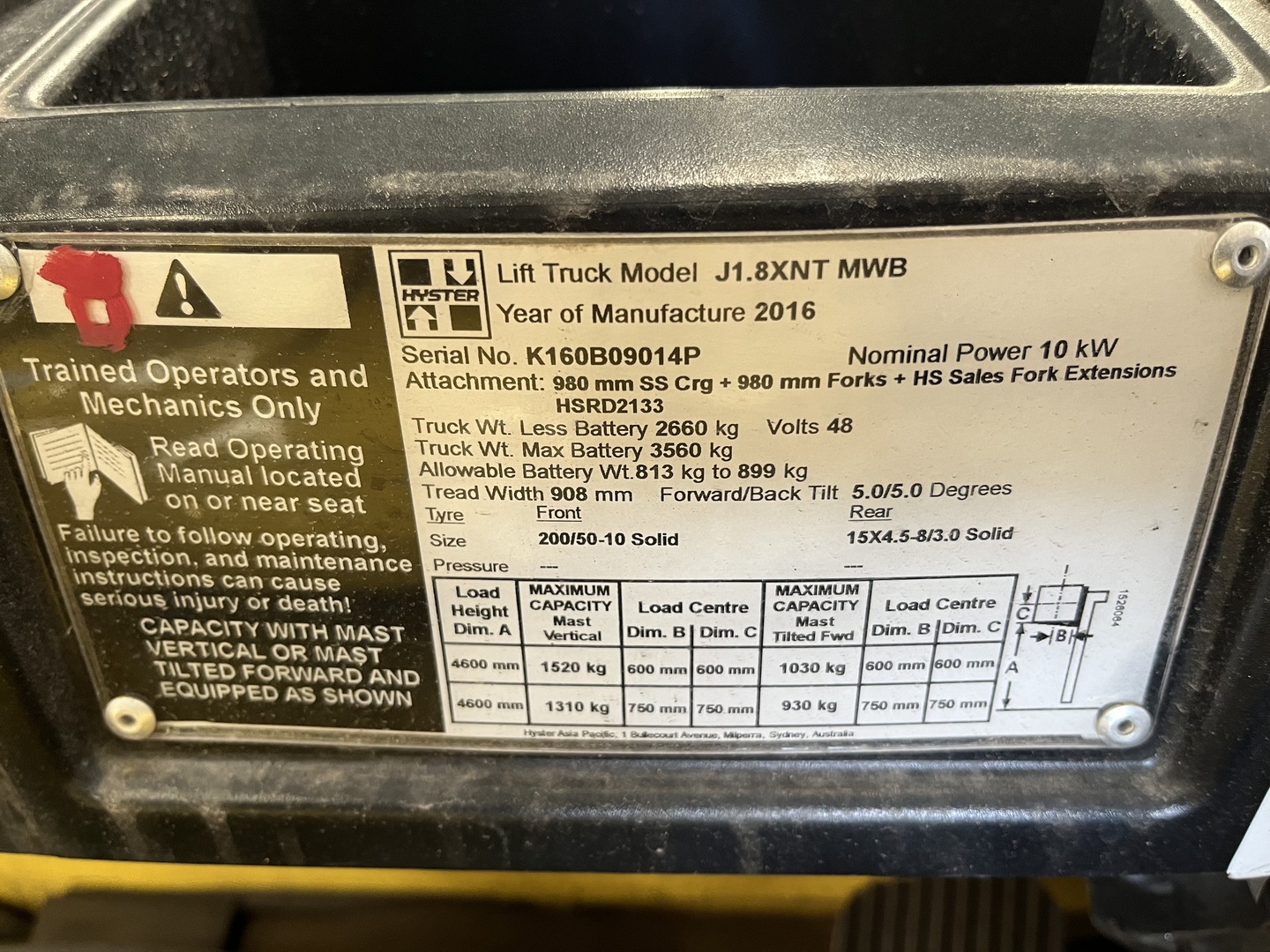 2016 HYSTER 1.8T BATTERY FORKLIFT WITH LOAD SCALES