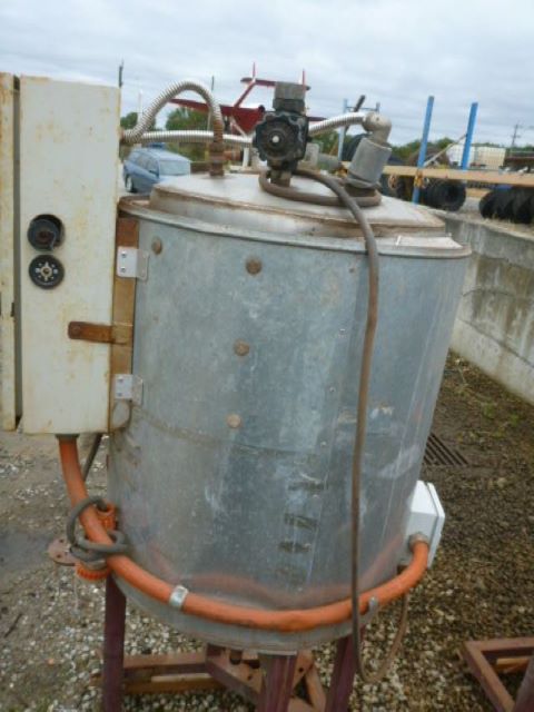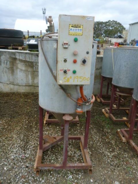 250LITRE STAINLESS STEEL INSULATED VESSEL WTH CONICAL BOTTOM ON STEEL FRAME WITH 1 x 2000watt electric element and switch box.