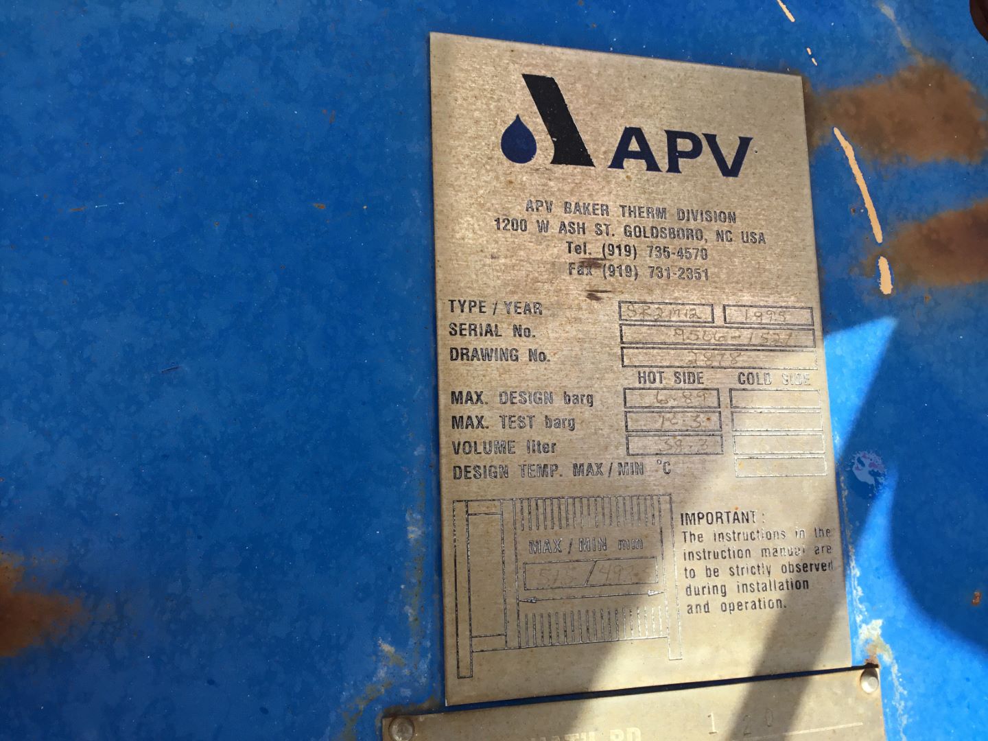 APV BAKER HEAT EXCHANGER