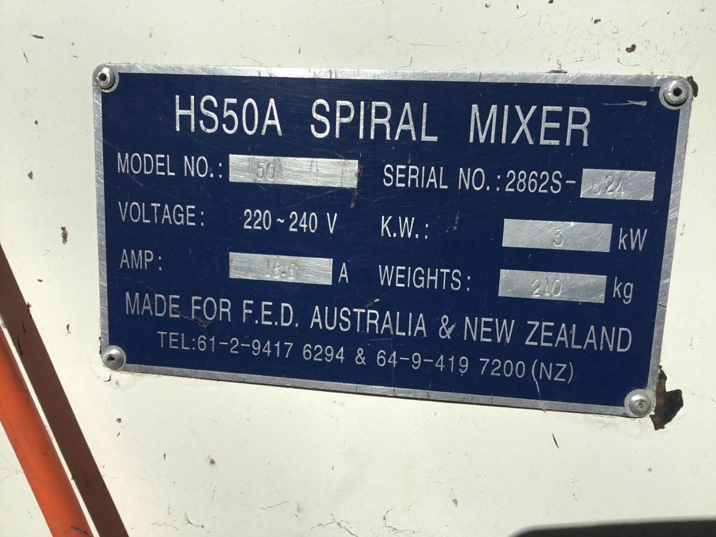 F,E,D, SPIRAL DOUGH MIXER 50 LITRE
