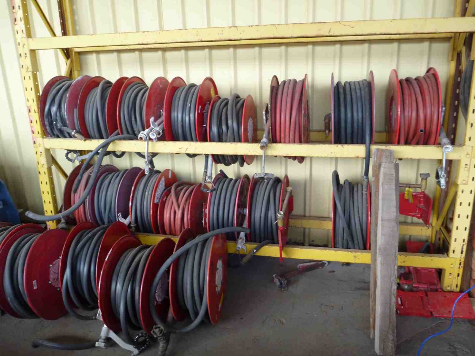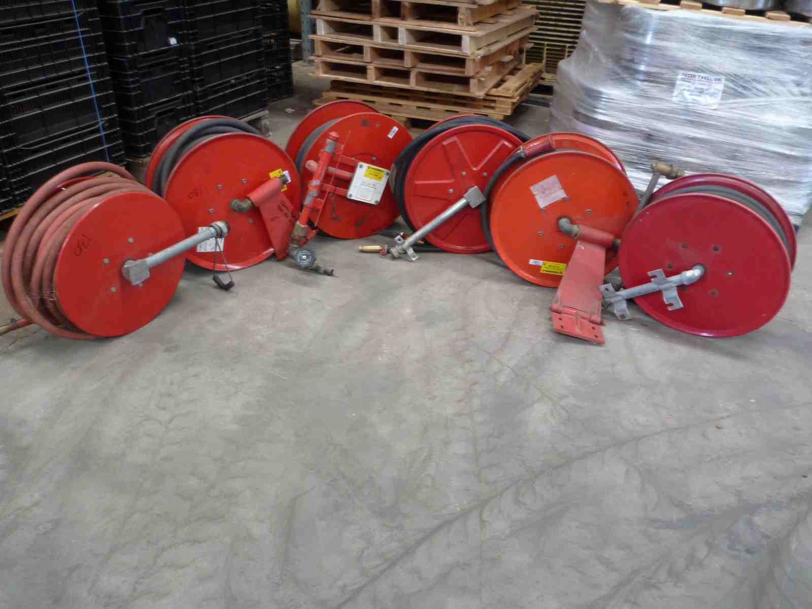 Fire Hose Reels, approx 35 Metre hose with nozzle, suitable for fire fighting units, avg $120 .