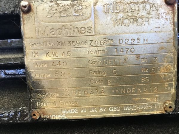 G E C 60HP (45KW) 3 PHASE 4 POLE D225M FRAME