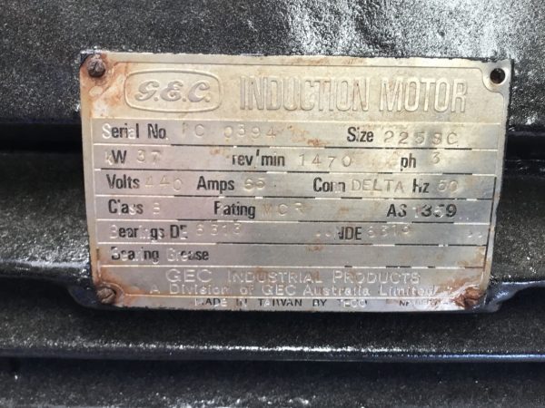 G E C 60HP (45KW) 3 PHASE 4 POLE D225M FRAME