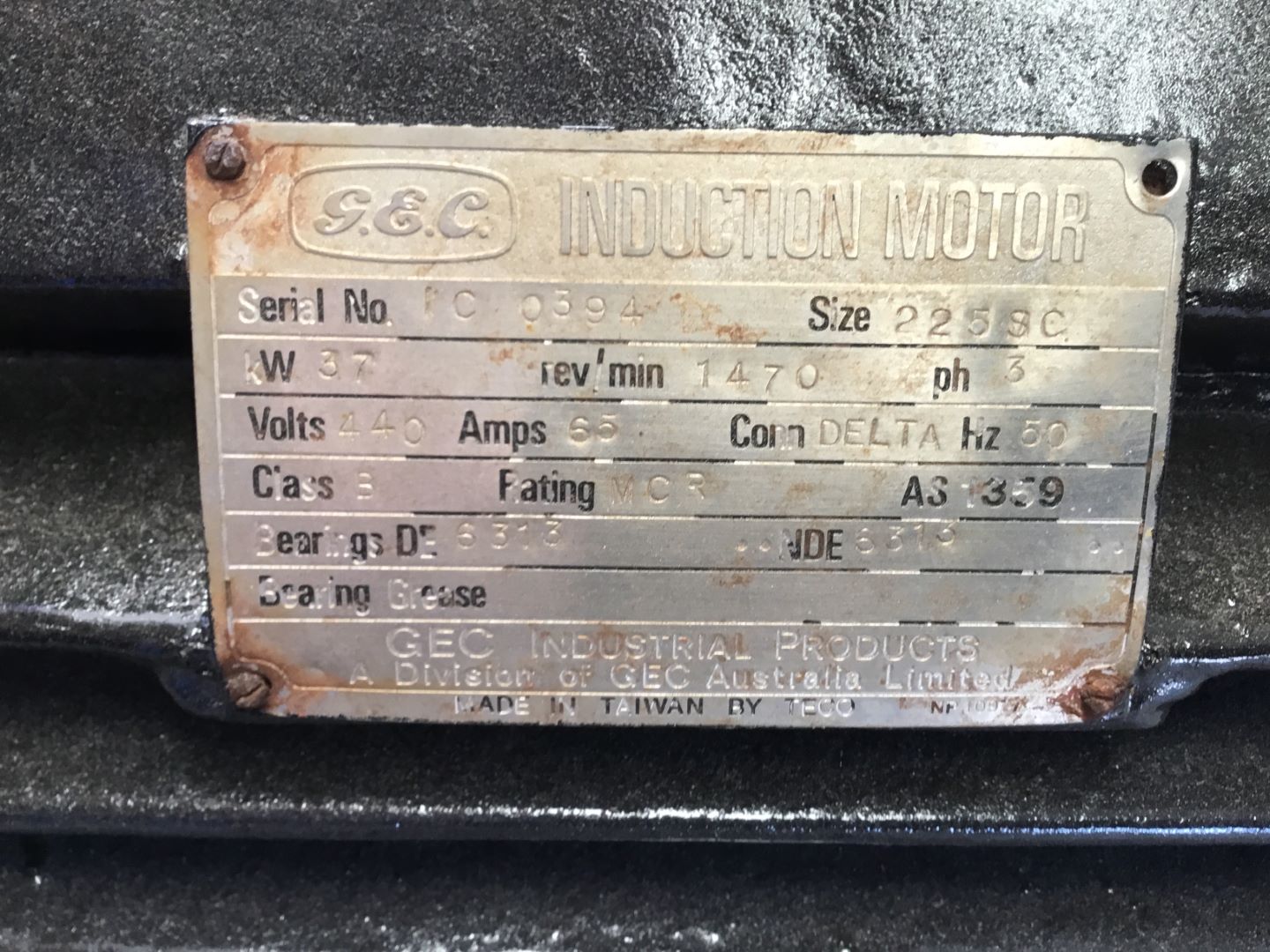 GEC 60HP 3 PHASE 4 POLE ELECTRIC MOTOR