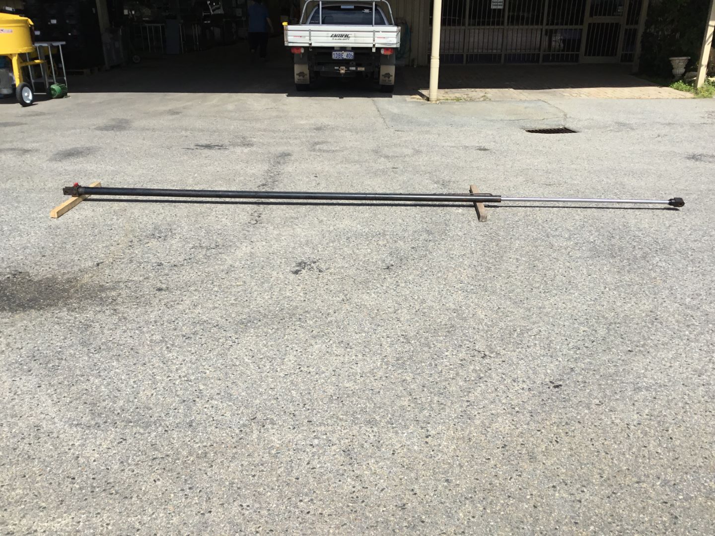1 X DOUBLE ACTING HYDRAULIC RAM, 3560MM COLLAPSED, 3200MM STROKE, 55MM CASING, 30MM ROD, 25MM BOTTOM PIN, 20MM TOP PIN .