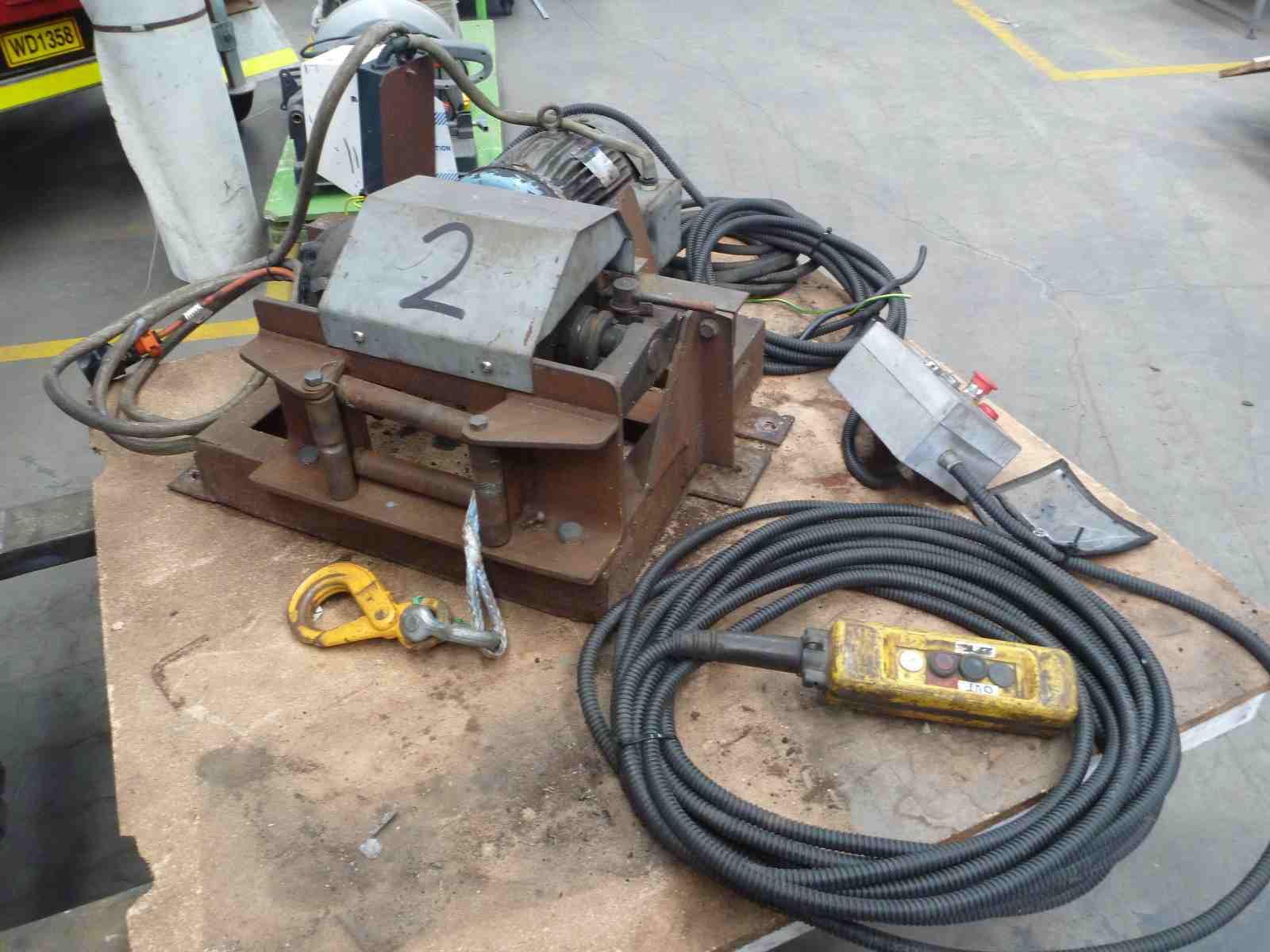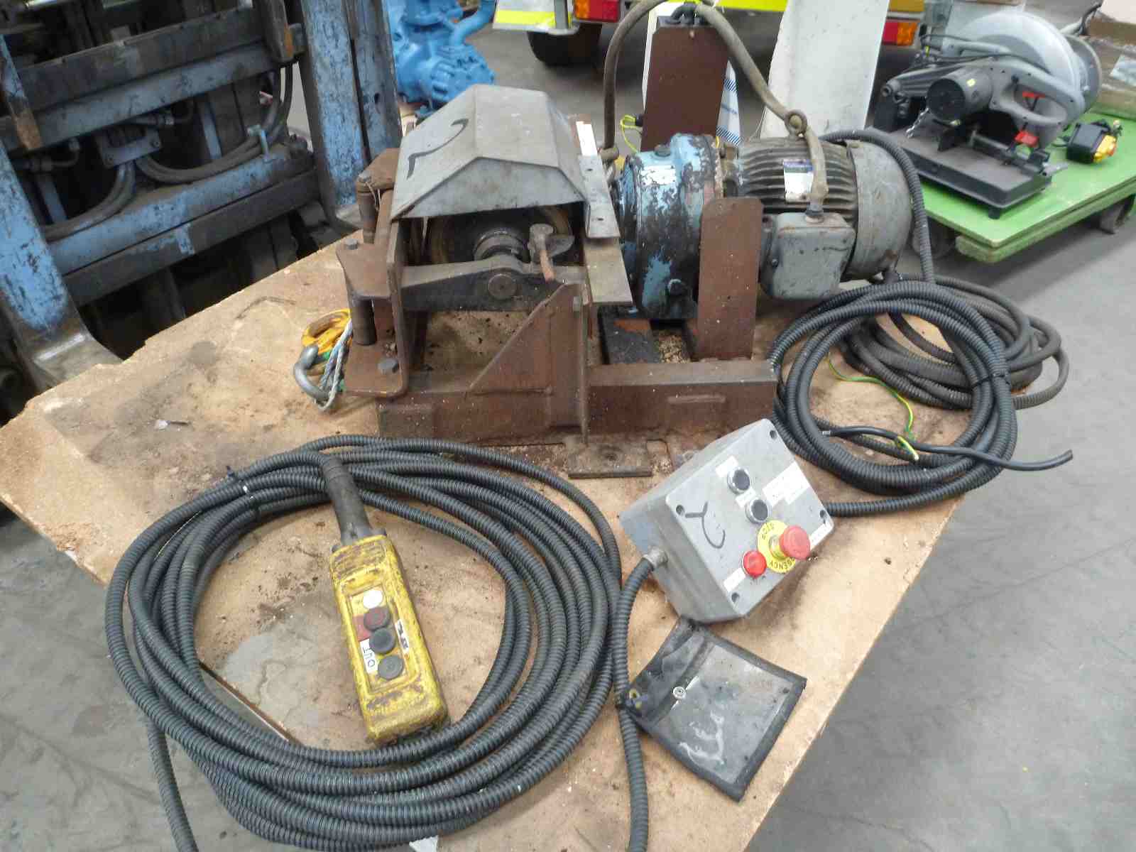 5.5hp, 3 PHASE WINCH, WITH FORWARD & REVERSE WALL MOUNT CONTROL & FORWARD PENDANT CONTROL .