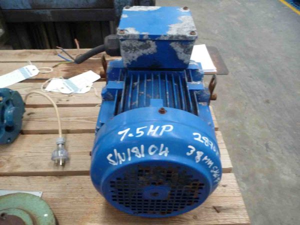 3 PHASE, 71/2 HP, (5.5KW) 3 PHASE 2 POLE, (2800 RPM) 38MM SHAFT, FOOT MOUNT ELECTRIC MOTOR .
