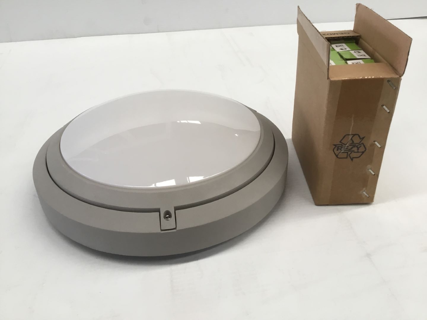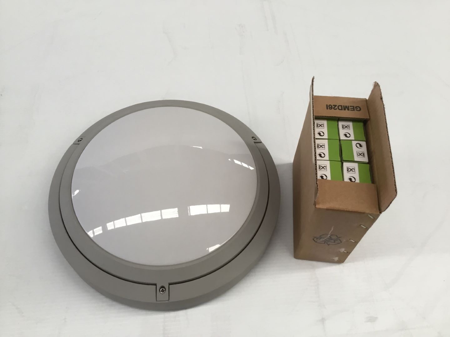 UNUSED COMMERCIAL 370MM WEATHERPROOF DOMED FLUORESCENT LIGHT FITTINGS.
