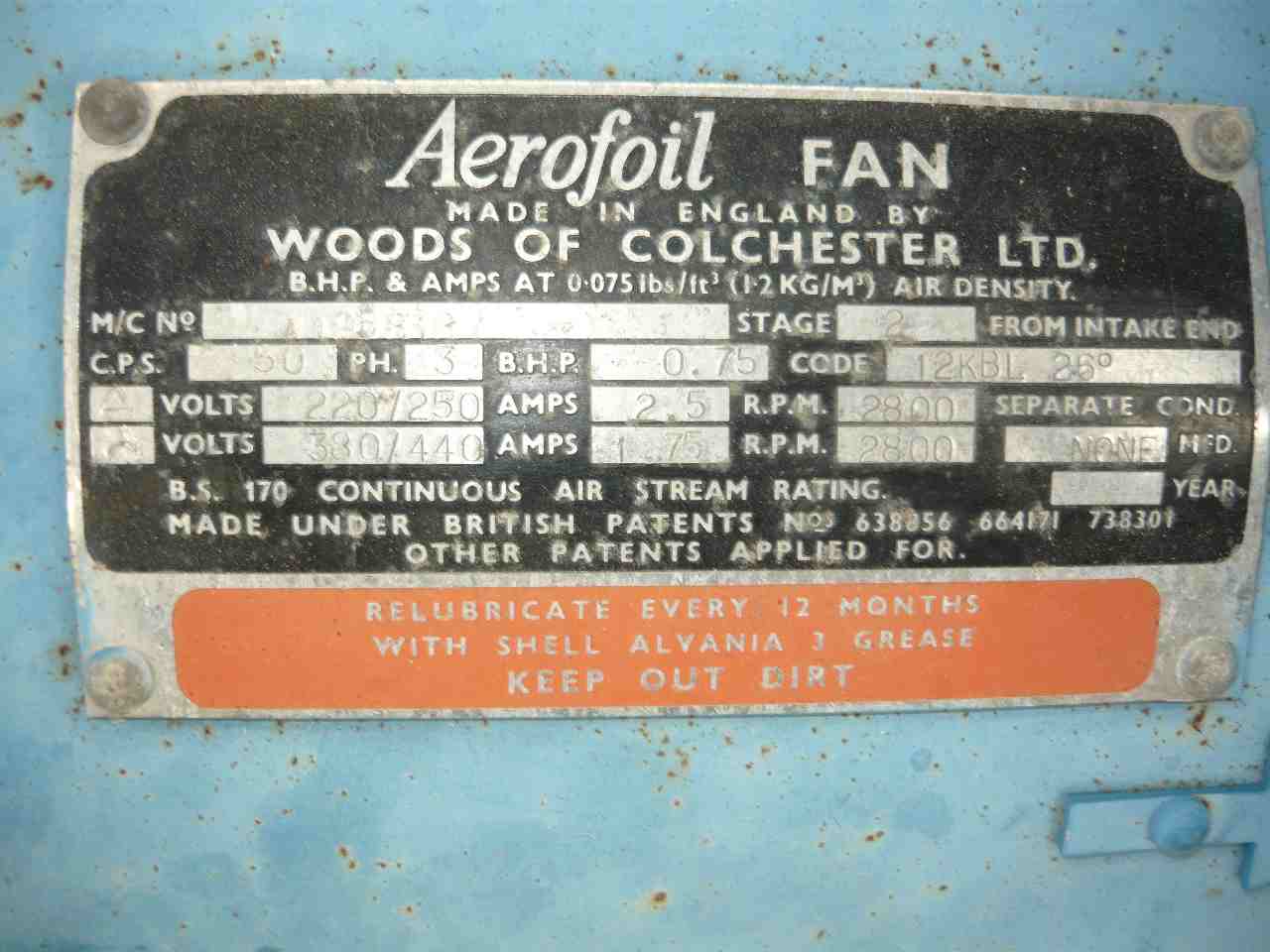 Wood's aerofoil fan 3/4hp, 3phase, 2900rpm, 300mm dia, 7,blade .