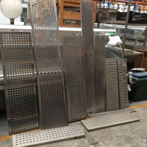 VARIOUS STAINLESS STEEL PERFORATED SHELVES-DRIP TRAYS